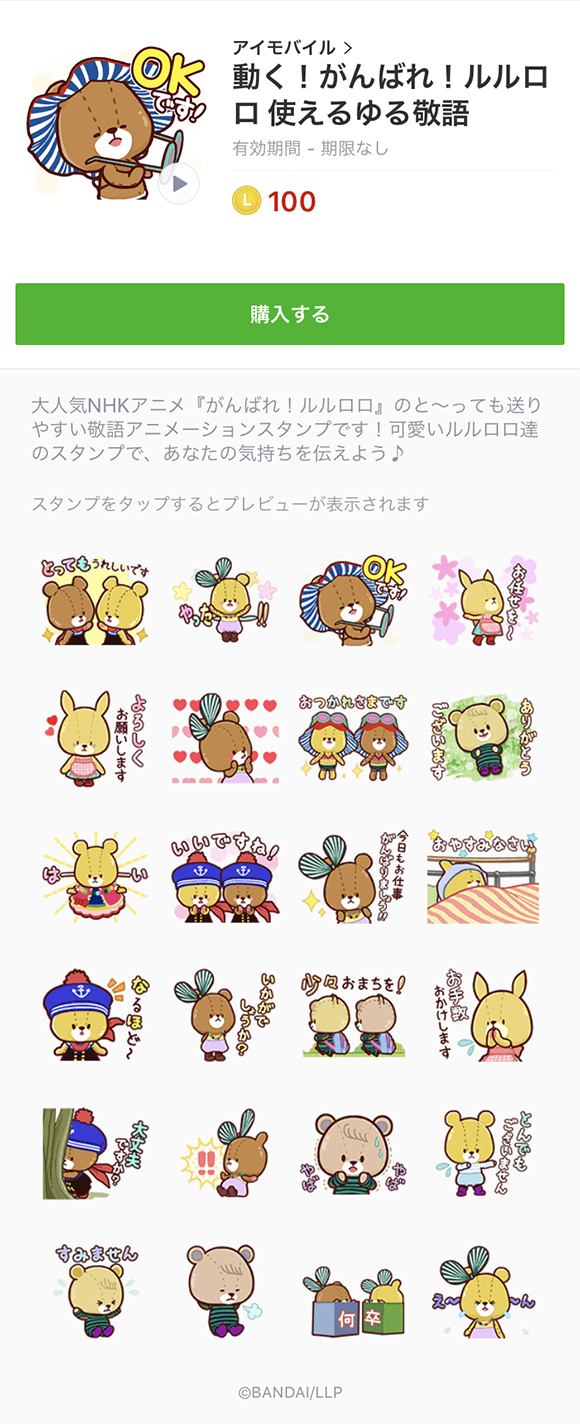 スタンプその3「動く!がんばれ!ルルロロ 使えるゆる敬語」