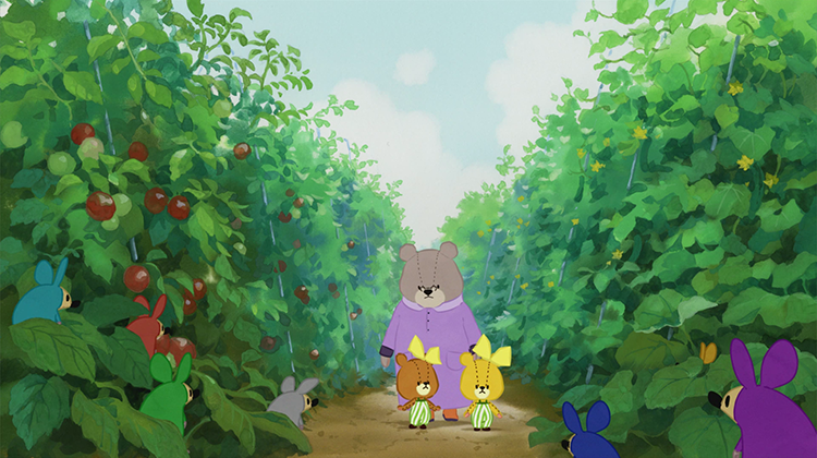 ふたごのルルとロロ。今日のお仕事は、おばあちゃんの畑でお野菜をいーっぱい取ることー!畑の野菜を調べる二人。おいしそうなトマトやきゅうりを収穫していきます。すると、ルルがかわいいふたごのにんじんさんを見つけました。でも何だかやせっぽち。近くにあるカボチャの影になって日が当たらないからのようです。ちょうど食べ頃のカボチャを持ちあげようとする二人でしたが…