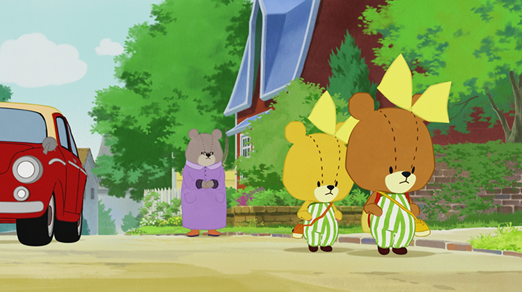 ふたごのルルとロロ。おばあちゃん登場!今日のお仕事は、おつかいを頼んだルルロロちゃんに内緒でついて行くこと!狭い道では一列で歩いたり、手をあげて道を渡ったりとても成長している二人。そして着いた玄関先でお届けものをしている姿を木陰から感慨深げに見つめていると、二人がおばあちゃんに気がつくのでした…