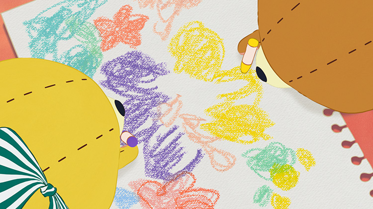 ふたごのルルとロロ。お外でみつけた見たことのない花をみんなに見せてあげるために、お花の絵を描くことになりました。お花と同じ色のクレヨンがなくて困っていると、色を合わせると新しい色ができるということをおばあちゃんが教えてくれます。でも、お花のめずらしい色ができずにけんかになってしまうふたり。そこへまたおばあちゃんがやってきて…